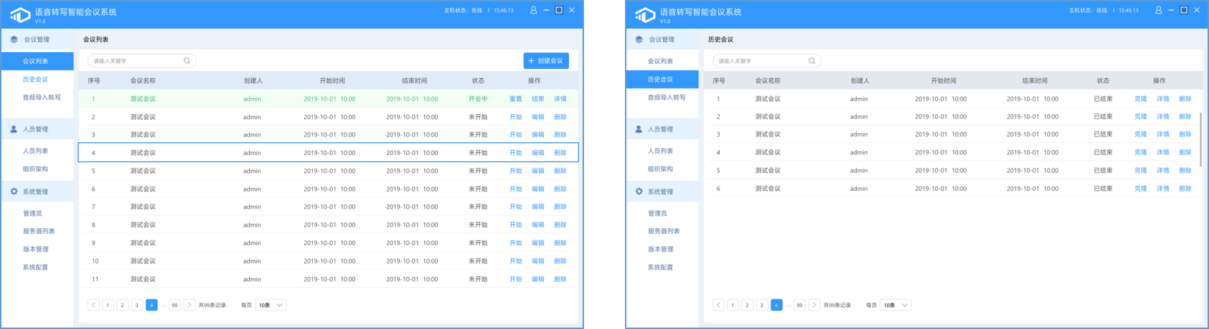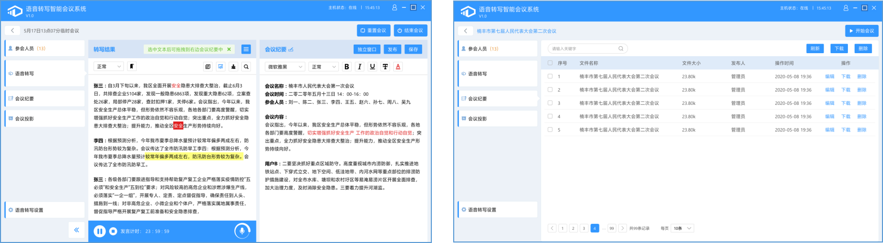 多会议室时配语音转写服务网络版,统一提供语音转写服务能力,支持多达32间会议室同时使用。每间会议室只需配备一台管理电脑和会议相关设备。