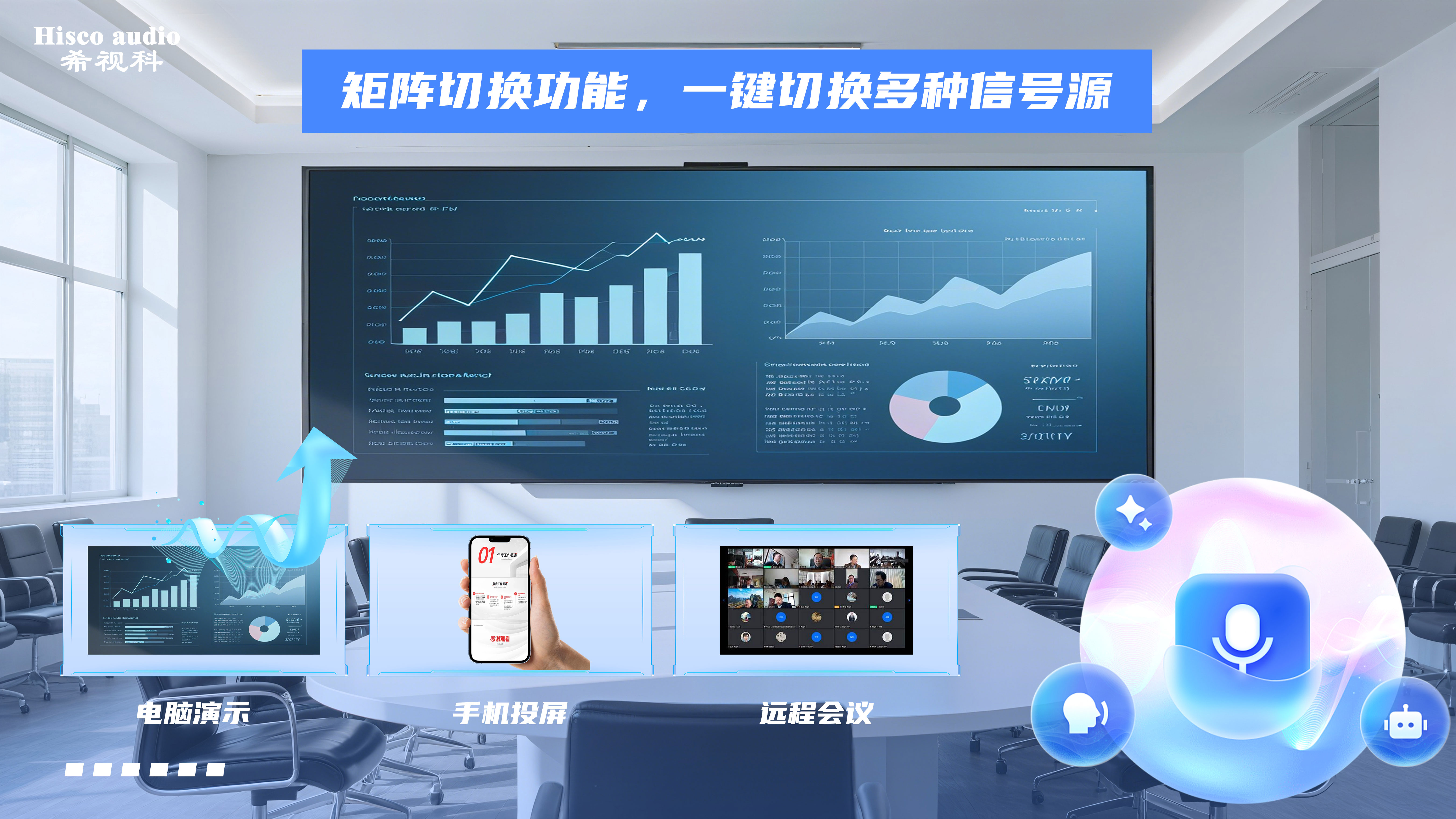 通过先进的AI语音识别技术,用户只需发出简单指令,即可完成设备开关、音量调节、信号切换等操作,无需手动操作,大大提升了会议效率。无论是切换PPT、播放视频,还是调整音频参数,都能轻松实现,真正做到了“说话即命令”。